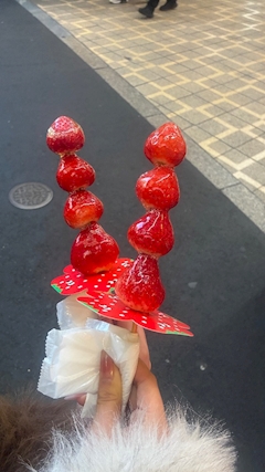 こんばんは!あいです~~ おととい、ひさしぶりに! いちご飴を食べました🍓🩷 幸せを感じました〜〜 今日22時~ SHIGIRAで待ってます🥺